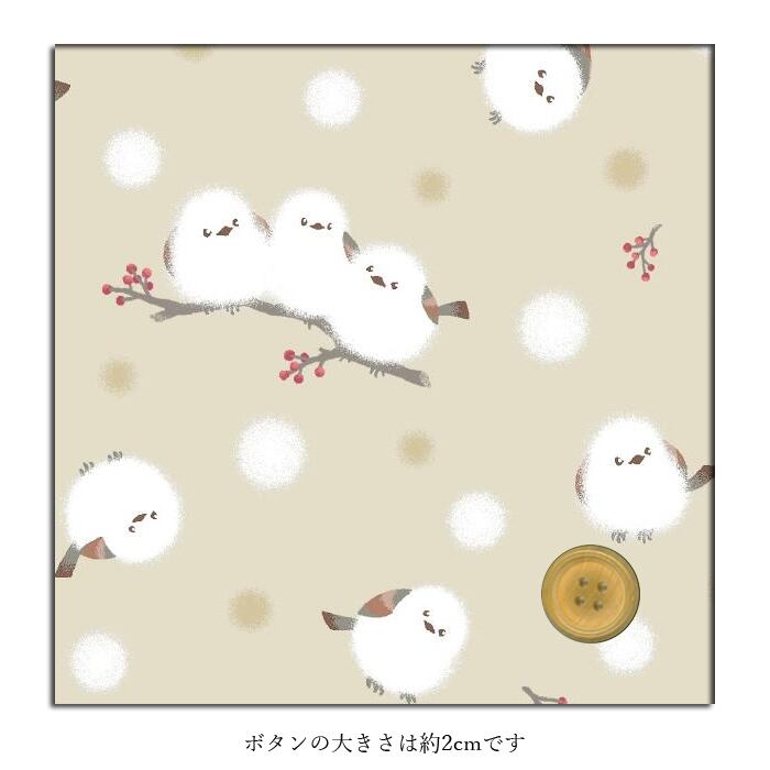 柄の大きさは生地上のボタン約2cmと比較してください。